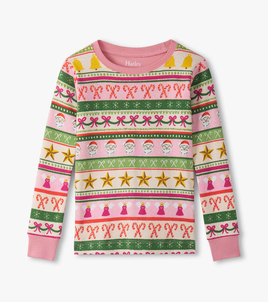 Girls Pink Fun Fair Isle Cotton Pyjama Set