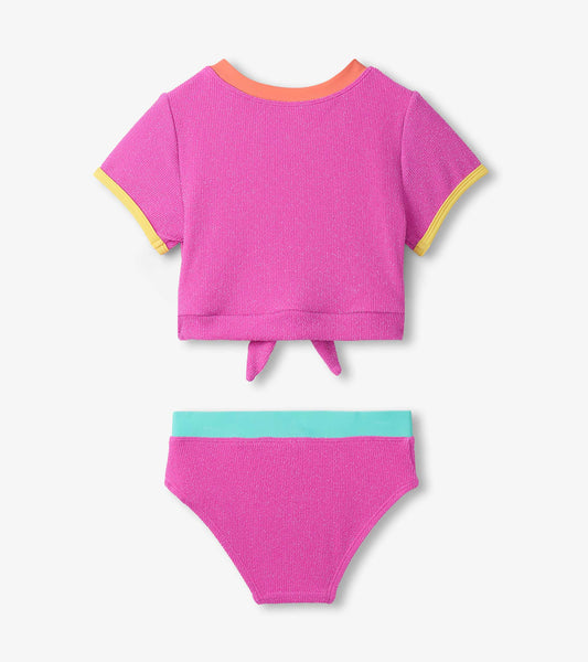 Girls Hot Pink Tie-Front Two-Piece Swimsuit