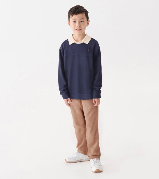 Boys Navy Colour Block Fleece 1/4 Zip Mockneck