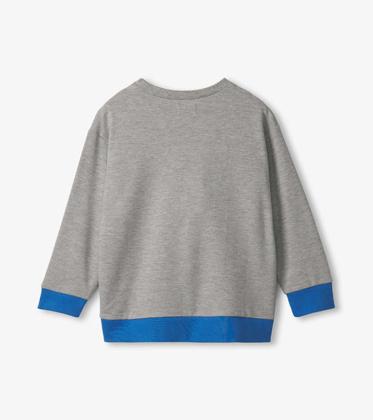 Boys Striped Athletic Grey Pullover Sweatshirt