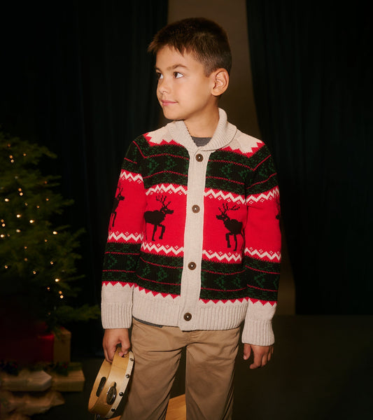Boys Holiday Elks Shawl Collar Cardigan