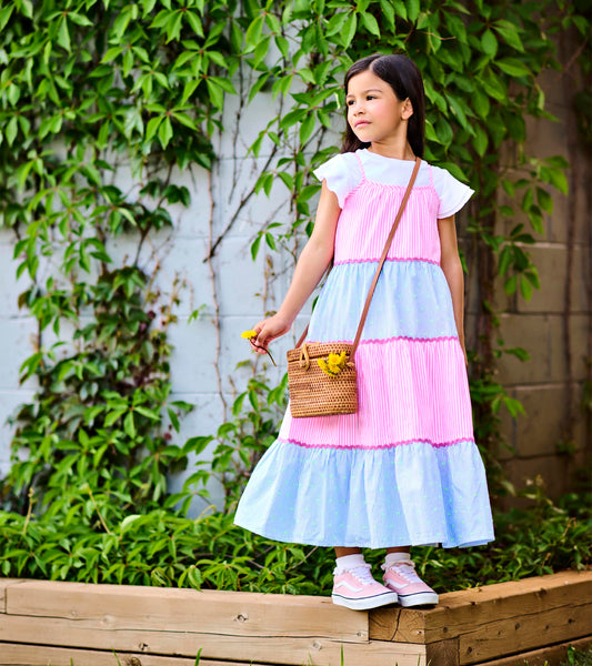 Girls Mixed Seersucker Strappy Midi Dress