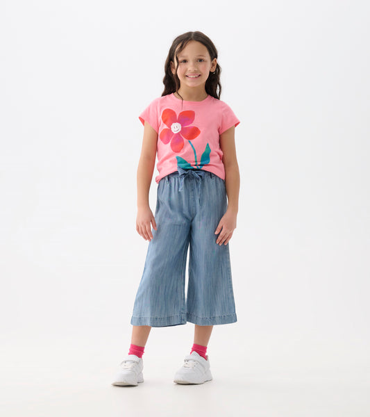 Girls Smokey Blue Wash Cropped Paperbag Pants