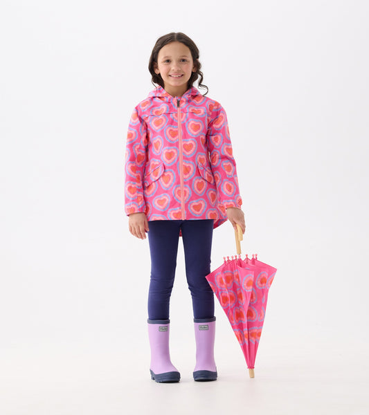 Girls Glowing Hearts Zip-Up Lightweight Raincoat
