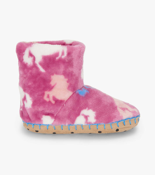 Girls Beautiful Horses Fuzzy Fleece Slippers