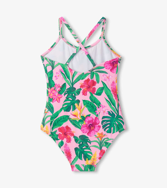 Girls Tropical Flowers One-Piece Swimsuit