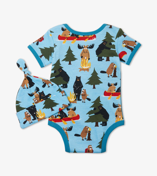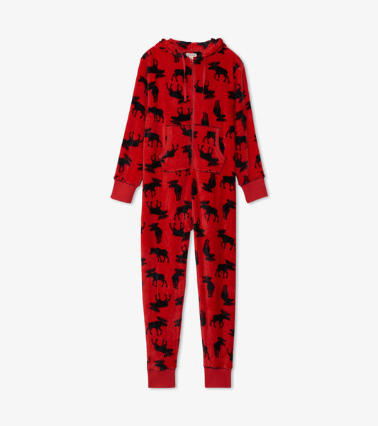 Adult Moose on Red Hooded Fleece Jumpsuit