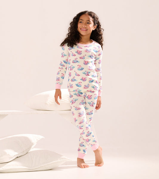 Girls Elegant Swans Cotton Pyjama Set