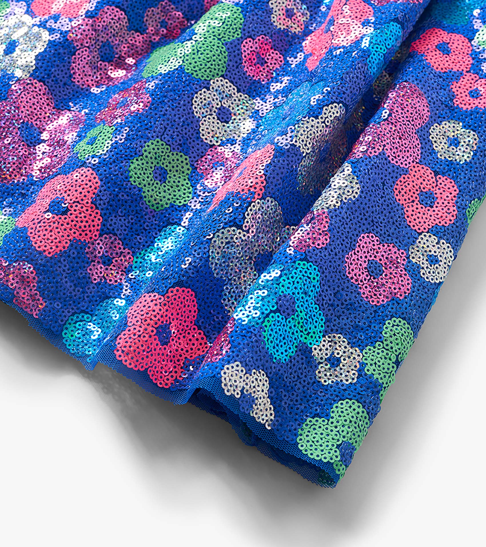 Add sparkle to their closet with this enchanting sequin skirt! Set against a soft blue base, the double-layer tulle overlay is adorned with a dazzling multicoloured sequin floral pattern that shimmers with every twirl. Finished with a glittery silver elastic waistband for comfort and a touch of shine, it’s the perfect statement piece for special occasions or everyday magic.